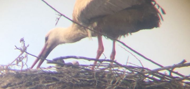 Die Storcheneltern füttern! Seit 10.5. wird im Nest fleißig Nahrung vertilgt – auch der ein oder andere Riesenbrocken ist dabei. Seit heute sind 2 kleine Köpfe im Nest zu sehen, da können aber noch...