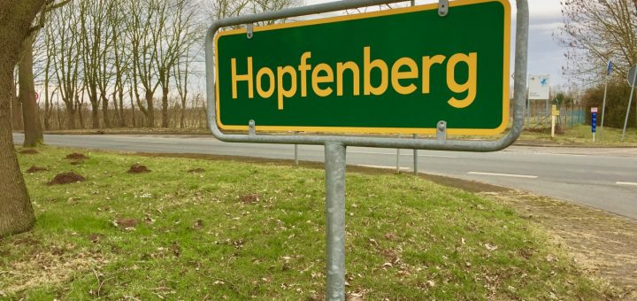 Der Hopfenberg hat sein grün-gelbes Schild wieder. In schöner Regelmäßigkeit wird das Schild entwendet. Jetzt sollte es etwas schwieriger sein – der Bauhof hat ein wenig Vorsorge getroffen. Mal sehen, wie lange es hält.
